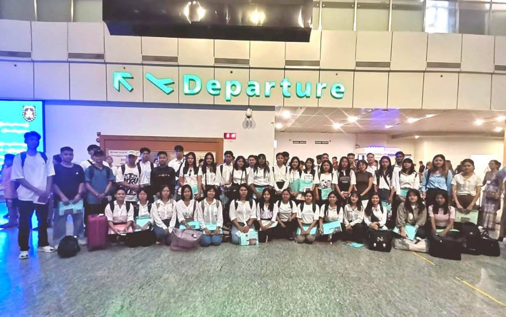 111 students left Myanmar Airport to work as Healthcare Assistant positions in Singapore hospitals under MOHH Management.