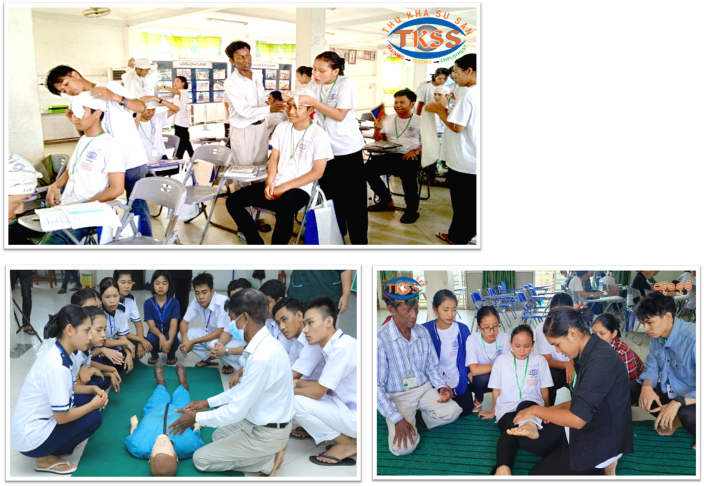 သုခစုစံအထူးကုဆေးခန်း၊ ဓါတ်ခွဲခန်း၊ ဆေးခန်း၊ ဆေးဆိုင်တွင်လက်တွေ့သင်ကြားချိန် ၂ လ အတွင်း လက်တွေ့သင်ကြားလေ့ကျင့်ရာတွင် အနာဆေးထည့်ခြင်း၊ အောက်စီဂျင်ပိုက်တပ်ခြင်း၊ သွေးပေါင်ချိန်တိုင်းခြင်း၊ ဆီးချိုသွေးချိုစစ်ဆေးခြင်း၊ ဆီးပိုက်သွင်းခြင်း၊ လက်ဆေးပုံနည်းစနစ်၊ အိပ်ယာပြင်ဆင်ပုံ၊ ECG ဆွဲခြင်း၊ လူကြီးပြုစုနည်းများ၊ ကလေးကိုင်တွယ်နည်း၊ အရေးပေါ်ကုသနည်းများ၊ ရှေးဦးသူနာပြုနည်းများ စသည့်နည်းစနစ်များစွာလက်တွေ့လေ့ကျင့်သင်ကြားပေးပါသည်။
